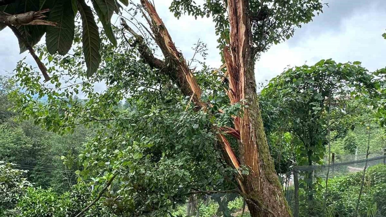 RİZE’DE YILDIRIM DÜŞMESİ SONUCU ARMUT AĞACI ORTADAN İKİYE BÖLÜNDÜ.