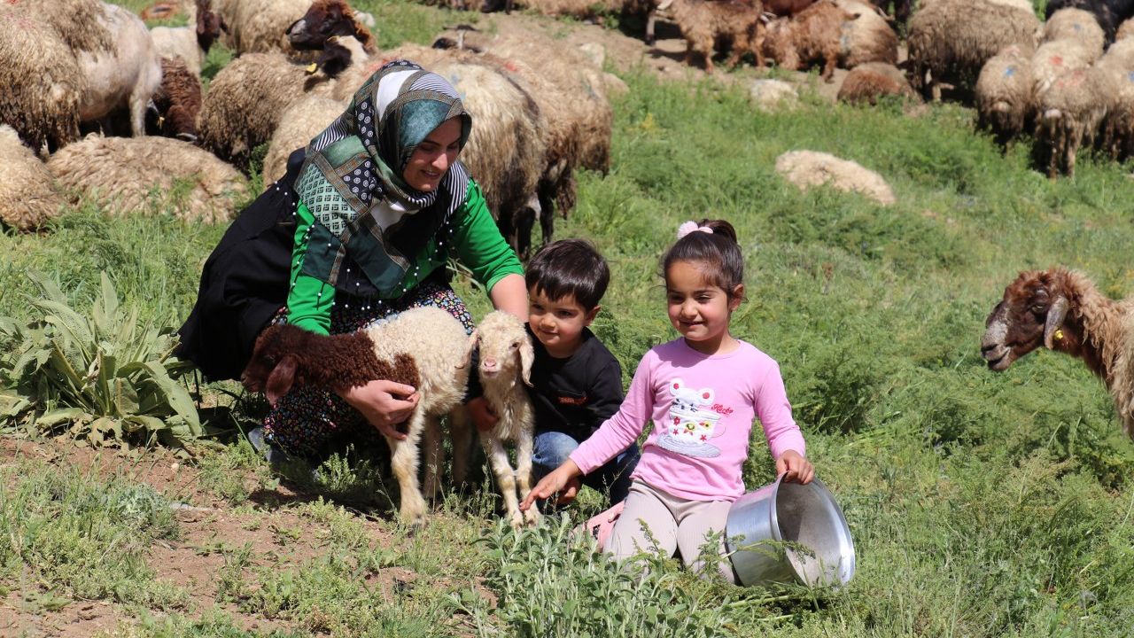 Sabahın erken saatlerinde eşinin yardımıyla meraya çıkardığı koyunlarını özenle besleyen Örnek, gözü gibi baktığı hayvanlardan elde ettiği süt ve yünü satarak ailesini geçindiriyor.
