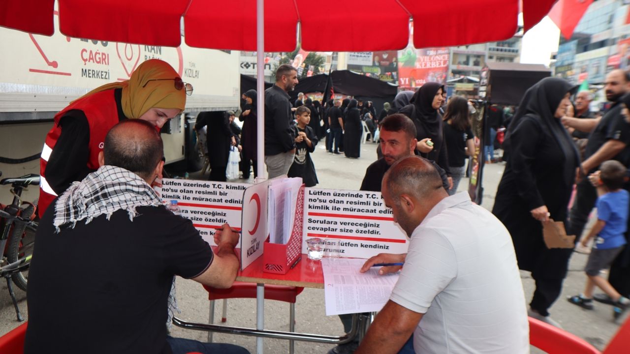 Iğdır’daki Zübeyde Hanım Bulvarı’nda düzenlenen Kerbela şehitlerini anma programına katılan bazı vatandaşlar, alanda kurulan Türk Kızılay çadırı ve kan toplama aracında kan bağışı yaptı.