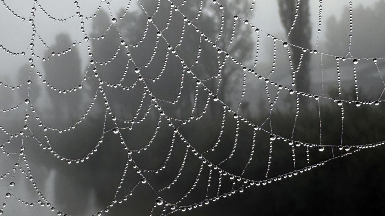 Sisin etkisiyle örümcek ağlarında damlacıklar oluştu.