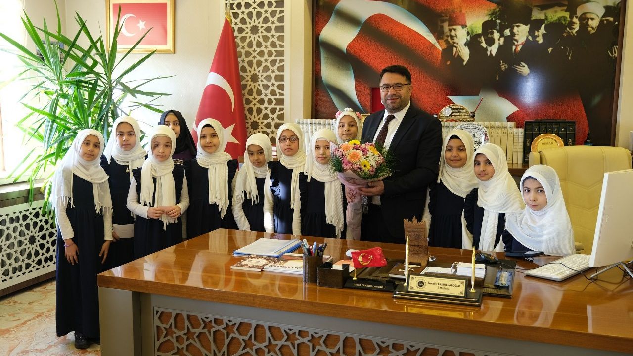 Erzincan Müftülüğü’ne bağlı Sümbül Valide Sultan Kız Kur’an Kursu’nun DEHA Gurubu talebeleri, İl Müftüsü İsmail Fakirullahoğlu’nu makamında ziyaret etti. Ziyarette, öğrencilerle keyifli bir sohbet gerçekleştiren Fakirullahoğlu, onlara başarılar dileyerek eğitim hayatlarında her zaman yanlarında olacaklarını belirtti. Ayrıca, öğrencilerin ailelerine teşekkürlerini ileten Fakirullahoğlu, çocuklarını bu anlamlı eğitimlere yönlendiren aileleri takdirle karşıladı.
