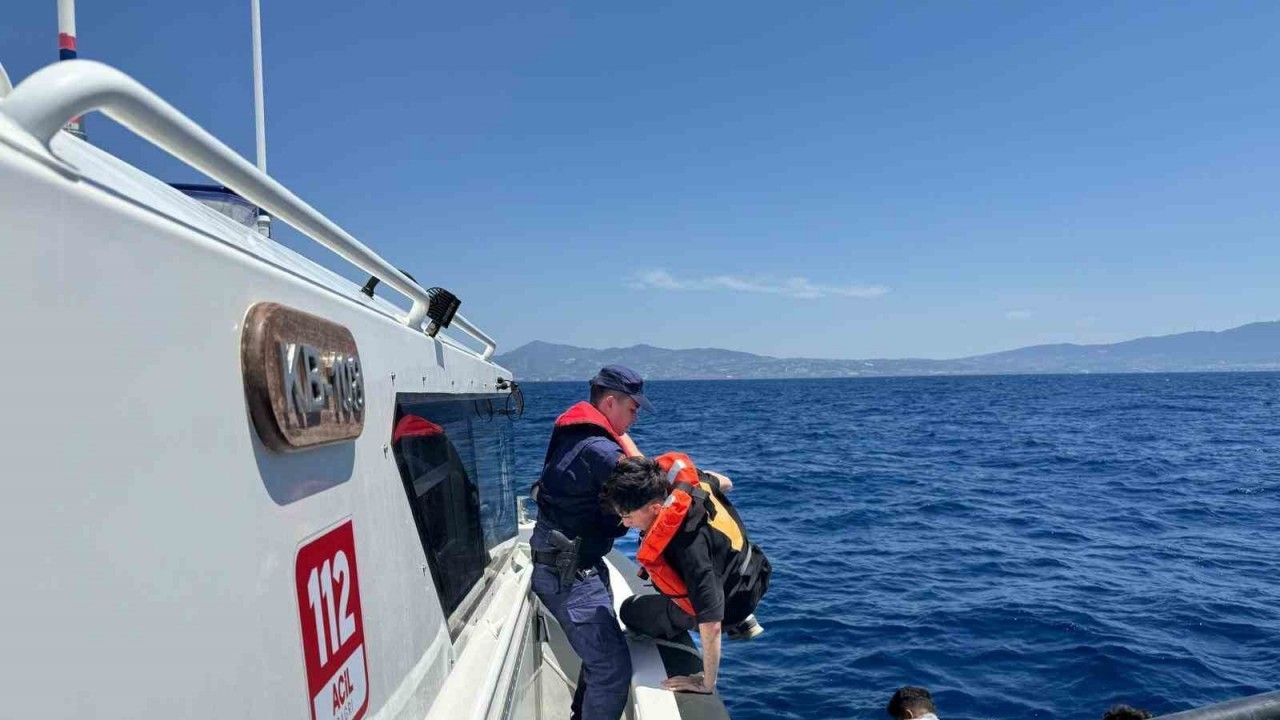 Aydın’ın Kuşadası ilçesinde lastik bot içerisindeki 31 düzensiz göçmen kurtarıldı.