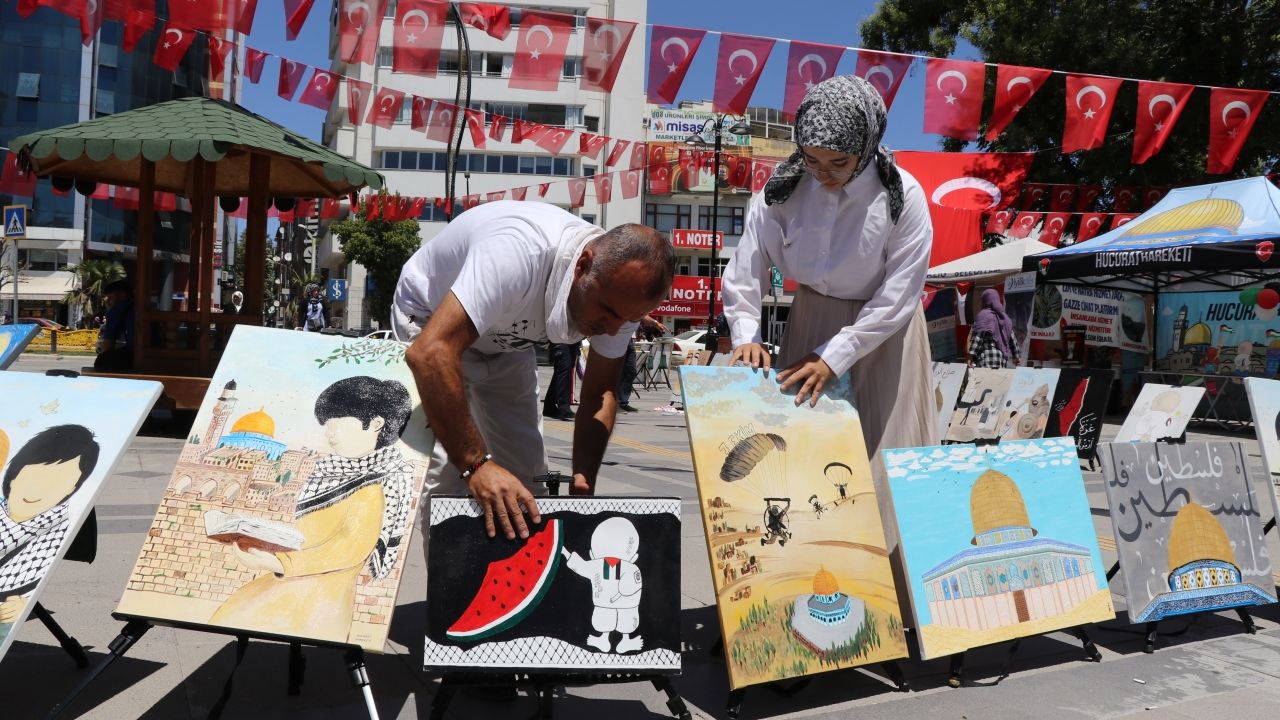 Türkiye’nin tüm bölgelerini gezdiklerini ifade eden Güzel, “Kudüs ve Gazze ile ilgili resimleri sergiliyoruz. Sergimiz 35 resimden oluşuyor. Gazze’de yaşanan soykırıma resimler yoluyla dikkati çekmek amacıyla böyle bir farkındalık çalışması yapıyoruz.” dedi.