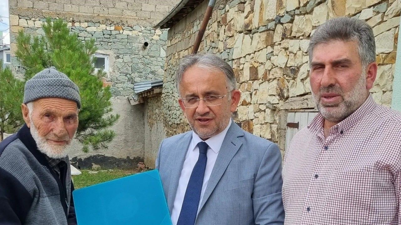 İl Müftüsü Bayram Danacı, Aydıntepe ilçesine bağlı Akbulut köyünde İkamet eden 83 yaşındaki Hafız Hasan Çakmak’ı ziyaret ederek Katılım Belgesi takdim etti.