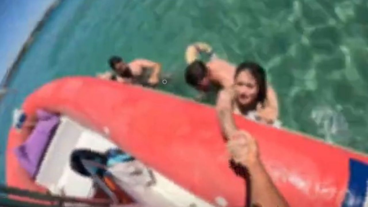 Didim Altınkum plajında boğulma tehlikesi geçiren kadın, cankurtaranlar tarafından kurtarıldı. Kurtarılma anı cep telefonuyla kaydedilirken, kadının panik hali ise dikkatlerden kaçmadı.
