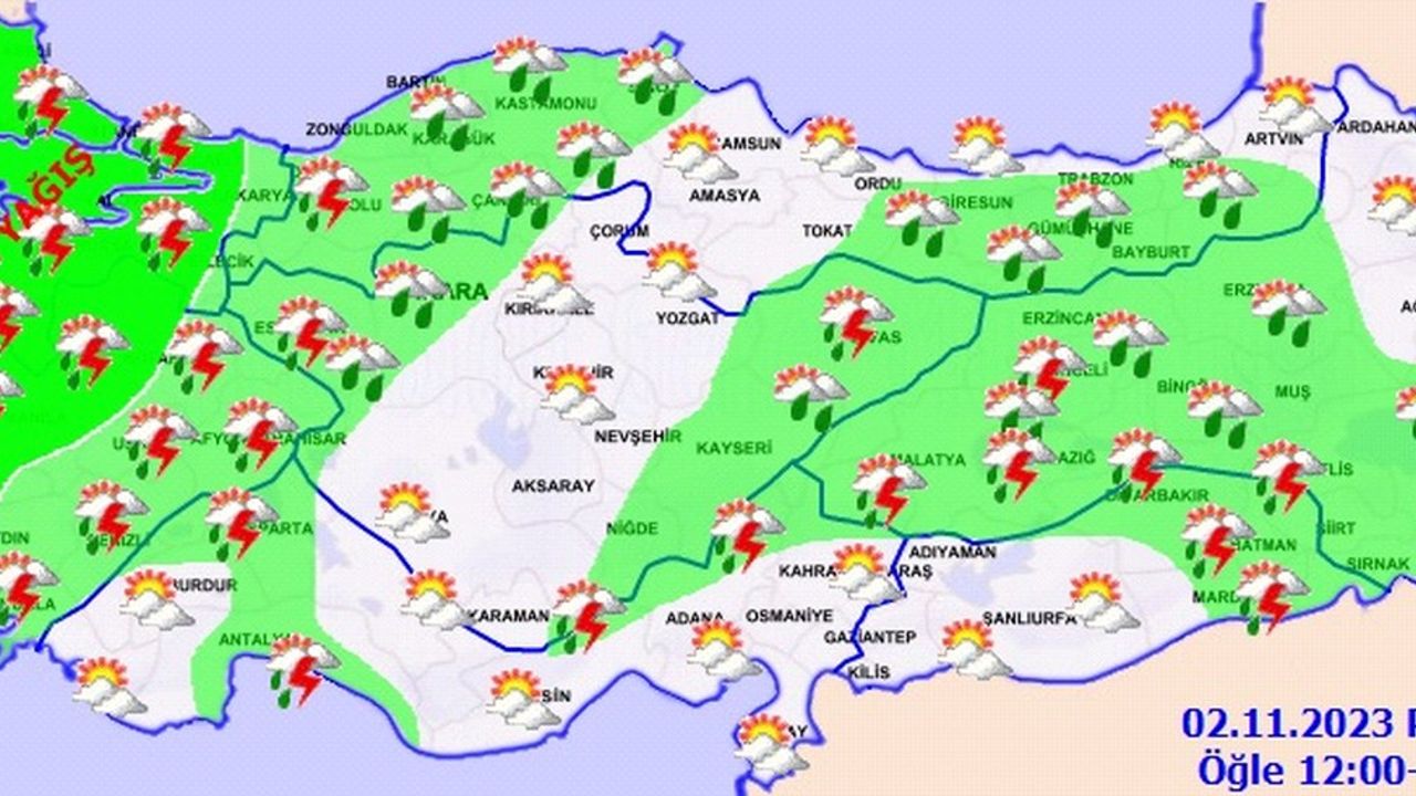 KUVVETLİ YAĞIŞ UYARISI: Yağışların Trakya, İstanbul, Kocaeli, Bursa, Yalova, Balıkesir, Çanakkale, İzmir ve Manisa çevreleri ile Aydın’ın kıyı kesimleri ve Muğla’nın batı kıyı kesimlerinde yerel olmak üzere kuvvetli sağanak ve gök gürültülü sağanak yağış beklendiğinden sel, su baskını, yıldırım, yerel dolu yağışı, yağış anında kuvvetli rüzgar, Ege kıyılarında hortum riski, ulaşımda aksamalar gibi olumsuzluklara karşı dikkatli ve tedbirli olunması gerekmektedir.