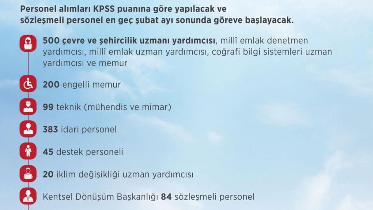 Personel alımları KPSS puanına göre yapılacak ve sözleşmeli personel en geç şubat ayı sonunda göreve başlayacak.