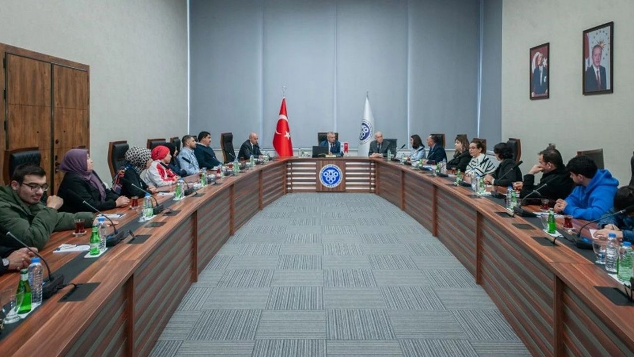 Rektörlük Toplantı Salonu’nda gerçekleşen toplantıya Üniversite Rektörü Prof. Dr. Akın Levent, Rektör Yardımcısı Prof. Dr. Adem Başıbüyük, Genel Sekreter Doç. Dr. M. Cihat Özgenel, Engelli Öğrenci Birimi Komisyonu Başkanı Prof. Dr. Papatya Karakurt, komisyon üyeleri ve öğrenciler katıldı.