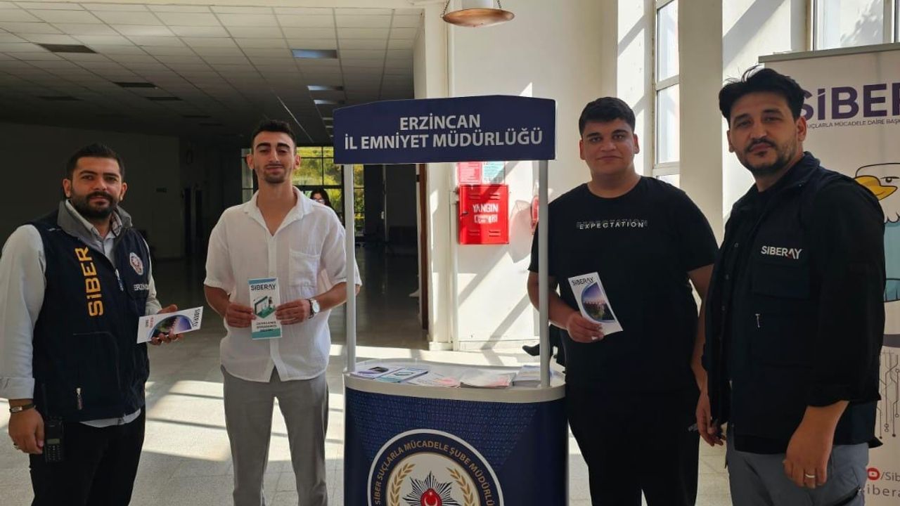 Erzincan İl Emniyet Müdürlüğü SİBER Suçlarla Mücadele Şube Müdürlüğü personelince, Siber Suçların gerçekleşmeden engellenmesi, maddi manevi zararların en aza indirgenmesi, farkındalık ve bilinçlendirme faaliyetleri kapsamında oluşturulan SİBERAY programı çerçevesinde, Erzincan Binali Yıldırım Üniversitesi öğrencilerine açılan stantta, Kişisel Veri Güvenliği, Burs Dolandırıcılığı, Hesap Kiralama Dolandırıcılığı, Yasadışı Bahis konularında bilgilendirme yapılarak broşürler dağıtıldı.
