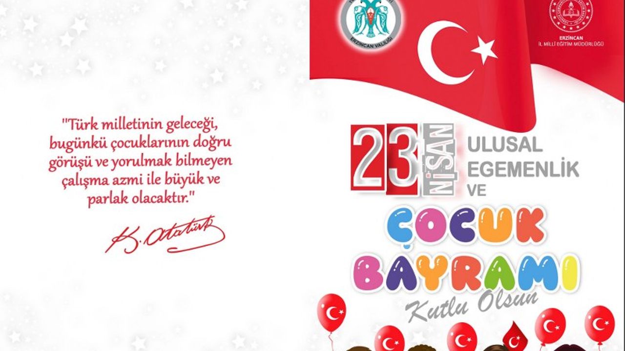 Erzincan Valisi Doç. Dr. Hamza Aydoğdu, 23 Nisan Ulusal Egemenlik ve Çocuk Bayramı’nın 105. yıl dönümü dolayısıyla tüm halkı kutlama programına davet ederek şu ifadeleri kullandı: