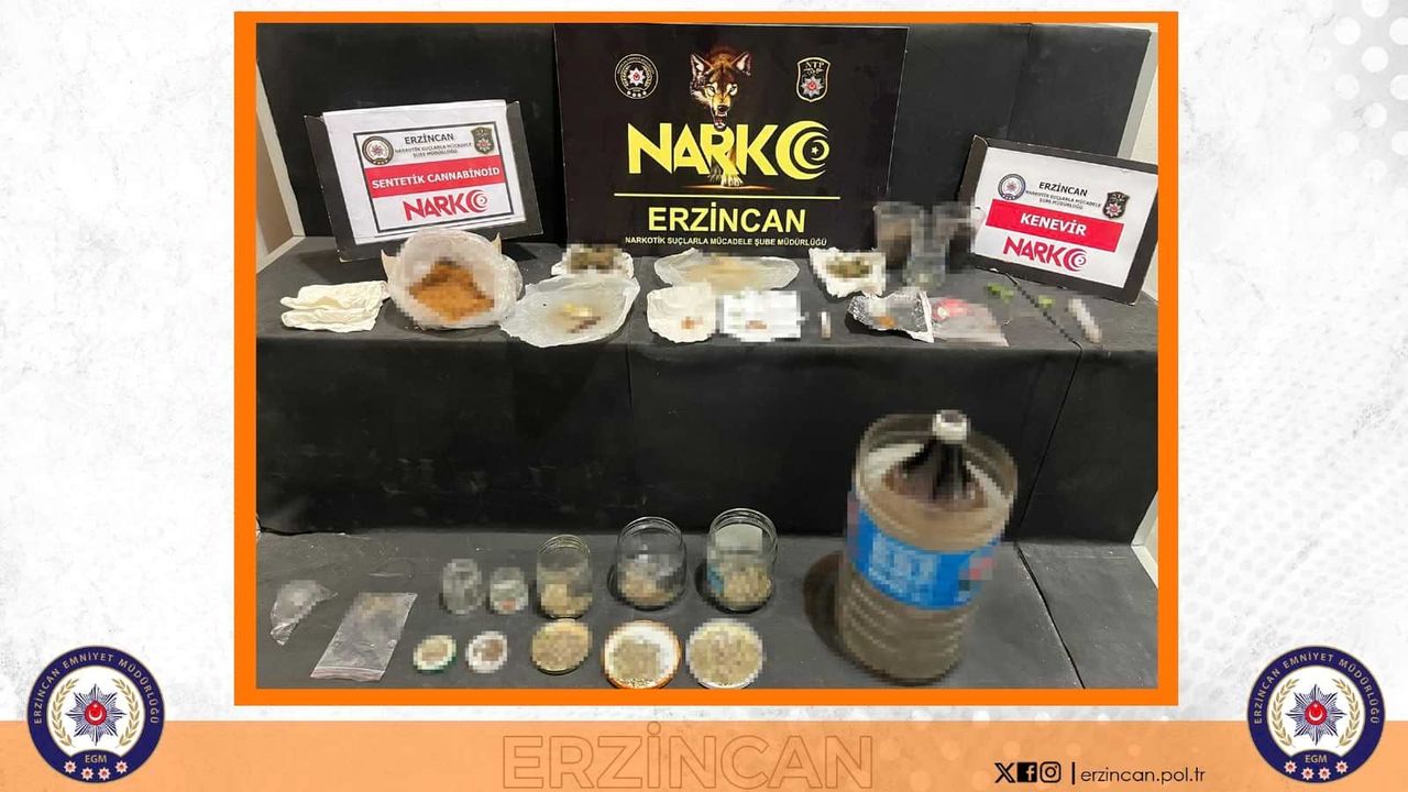 Evde yapılan aramada çok sayıda uyuşturucu madde ve düzenek ele geçirildi. Erzincan İl Emniyet Müdürlüğü Narkotik Suçlarla Mücadele Şube Müdürlüğü ekipleri, uyuşturucu ticareti ve kullanımına yönelik başarılı bir operasyona imza attı.