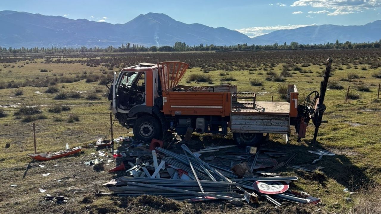 Çarpmanın etkisiyle kamyon refüjü aşarak karşı şeride geçip yol dışına devrildi.