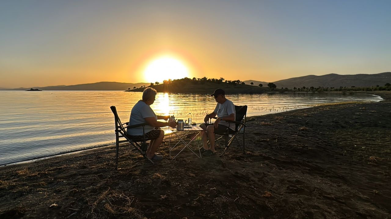 Doğa Anadolu Bölgesi’ndeki rotaları kapsamında Elazığ’ın tarihi, turistik yerleri ile doğa güzelliklerini gezen ve Hazar Gölü kıyısında kamp kuran Sönmez çifti, göl kıyısında gün batımını izledi.