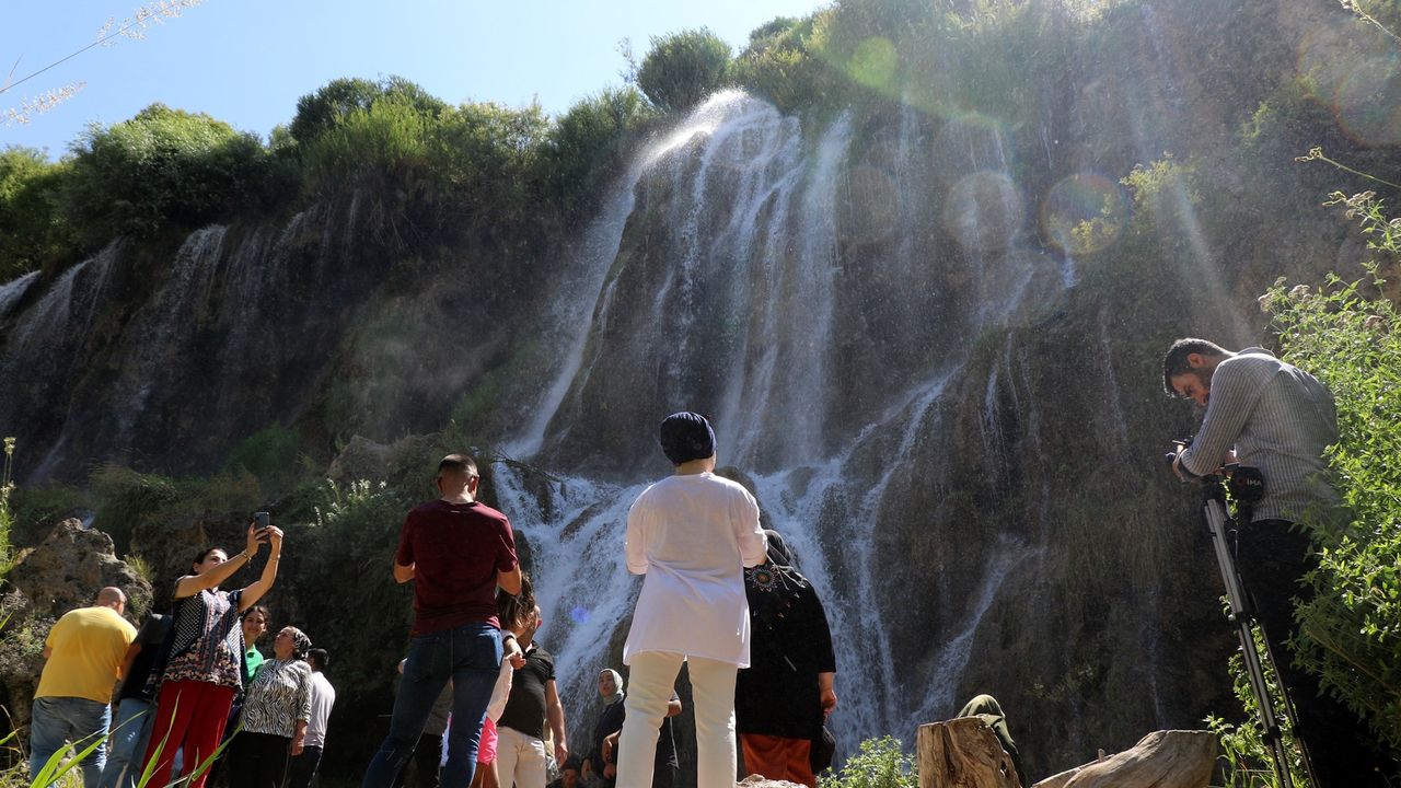 Sıcaklıkların artmasıyla şehrin stresinden ve gürültüsünden uzaklaşıp vakit geçirmek için doğayla iç içe olan serin alanlara yönelen vatandaşlar, 40 metreden akan buz gibi suyu ve doğal güzelliğiyle öne çıkan Girlevik Şelalesi mesire alanında serinliyor.