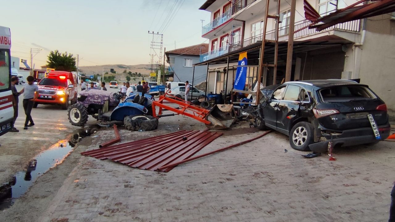 Öte yandan kaza mahalledeki bir iş yerinin güvenlik kamerasınca kaydedildi. Görüntülerde otomobilin hızla gelerek traktöre çarpması ve çevredekilerin kaçışması yer alıyor.