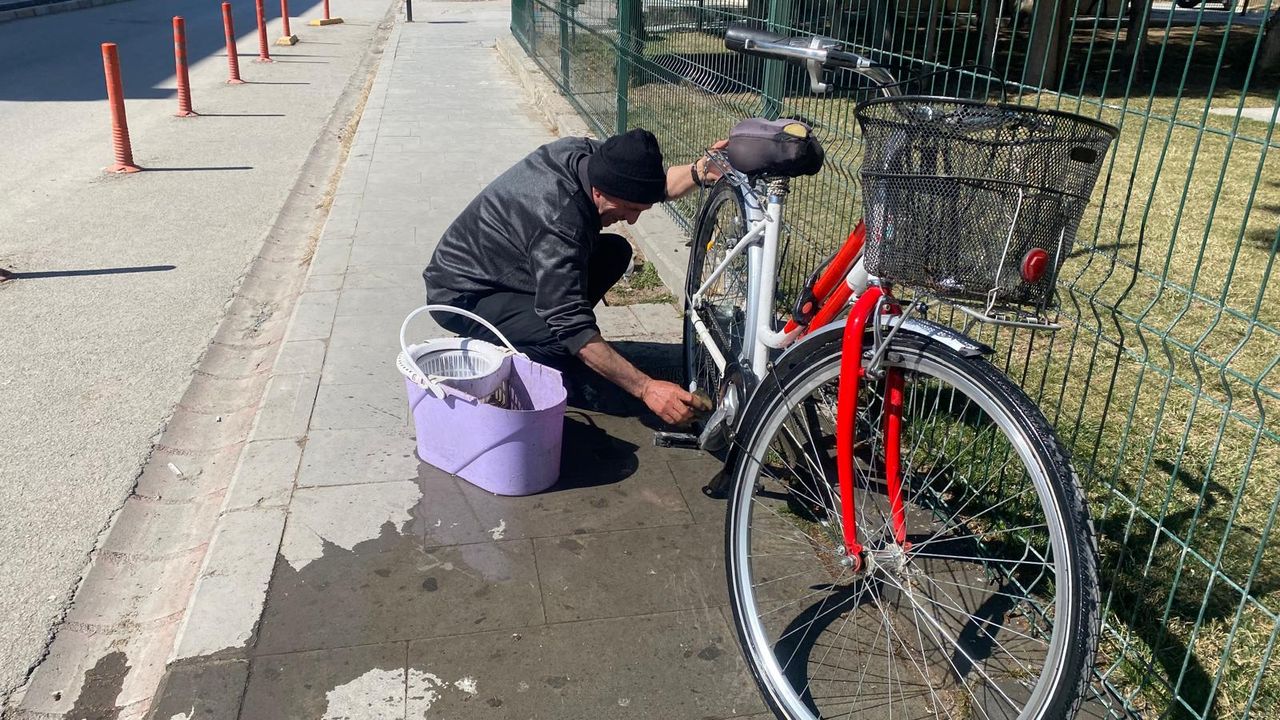 Bisiklet kullanımın oldukça sık yaşandığı Erzincan’da, güneşli havada bir  vatandaş bisikletini yıkayarak kullanıma hazır hale getirdi. Kış boyunca bodrumda tozlanan bisikletini dışarı çıkartan vatandaş, sıcak havada bisikletinin genel temizliğini yaptı.