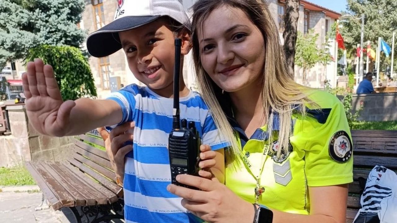 Erzincan’da hayalinin polis olmak olduğunu söyleyen çocuğa, polis ablasından destek geldi.