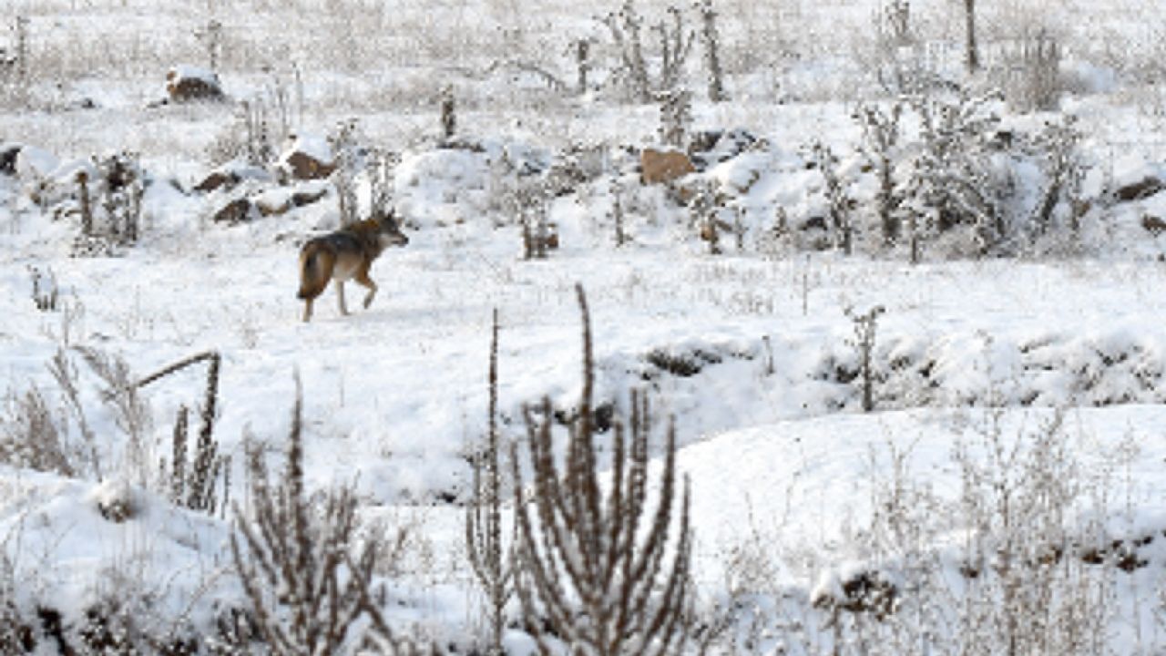 Kars Sarıkamış’ta Kurt ve Kızıl Tilkiler, Karla Kaplı Arazide Yiyecek Ararken Görüntülendi