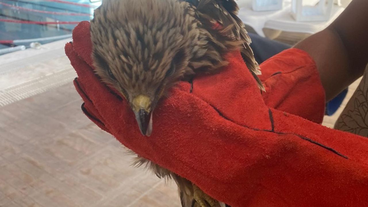 Havuzdan çıkmaya çalışırken yaralanan kuş, ihbar üzerine bölgeye gelen Doğa Koruma ve Milli Parklar görevlilerine teslim edildi.