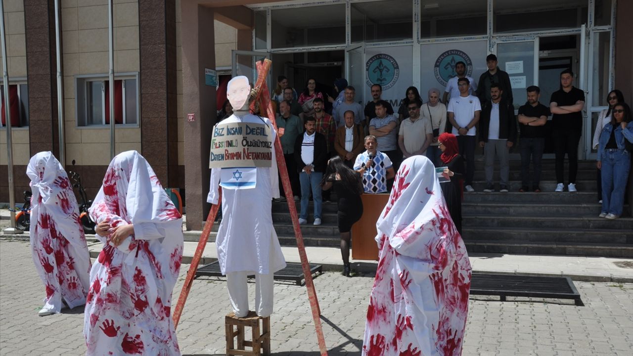 KARS (AA) – Kars’ta, İsrail’in Filistin‘e yönelik saldırılarını protesto eden üniversite öğrencileri, İsrail Başbakanı Binyamin Netanyahu’nun maketini idam sehpasında temsili olarak astı.