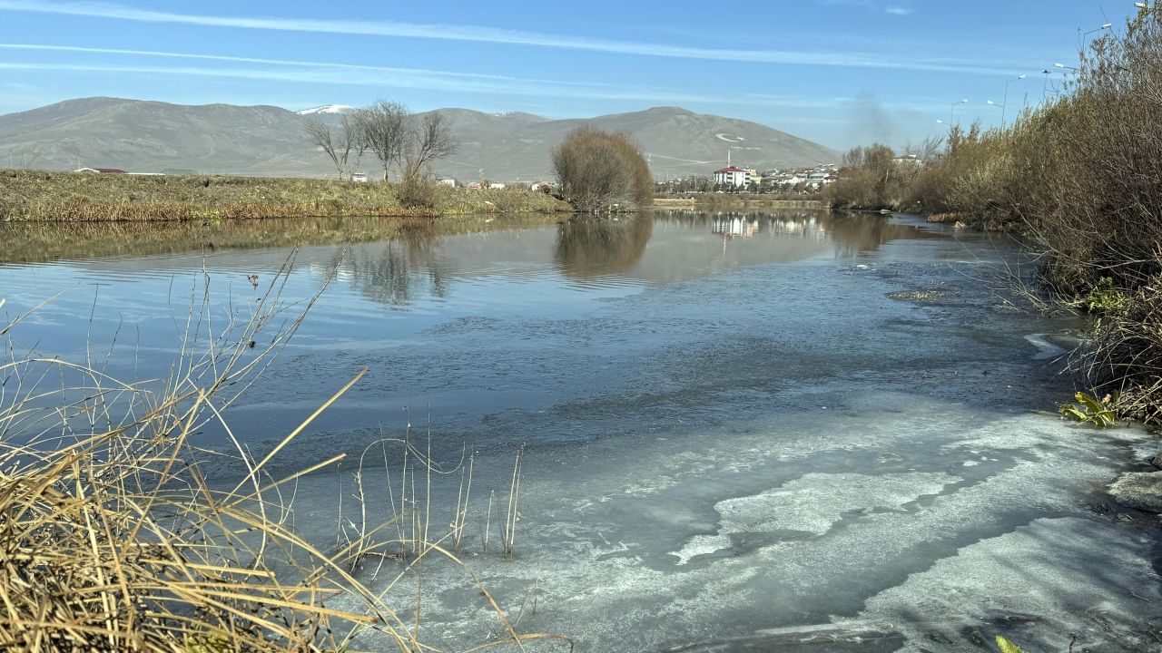 Ardahan’da soğuk hava nedeniyle Kura Nehri yüzeyinin bir bölümünde buzlanma meydana geldi
