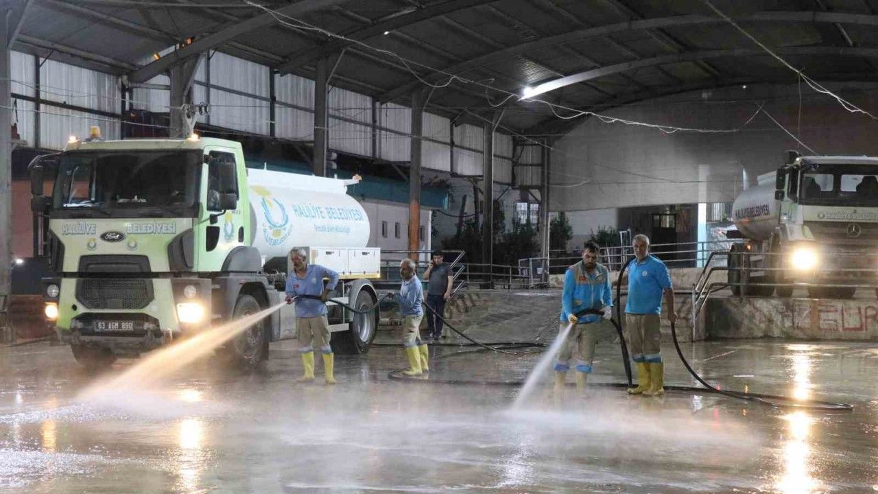 Şanlıurfa’nın Haliliye Belediyesi, kurbanlıkların kesilmesinin ardından yürüttüğü hummalı temizlik çalışmalarıyla kurban kesim yerlerini ilaçlı suyla yıkıyor. Mazgal ve çöp konteynerlerini dezenfekte eden ekipler, kötü koku oluşmasını önlüyor.