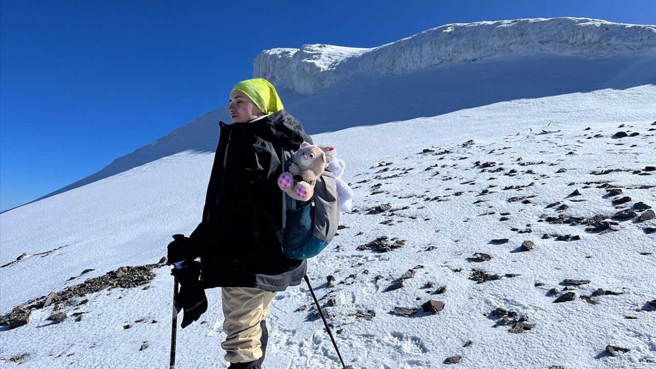 Lise öğrencisi Meryem, oyuncak ayıcıklarla Ağrı Dağı’nın zirvesine tırmandı