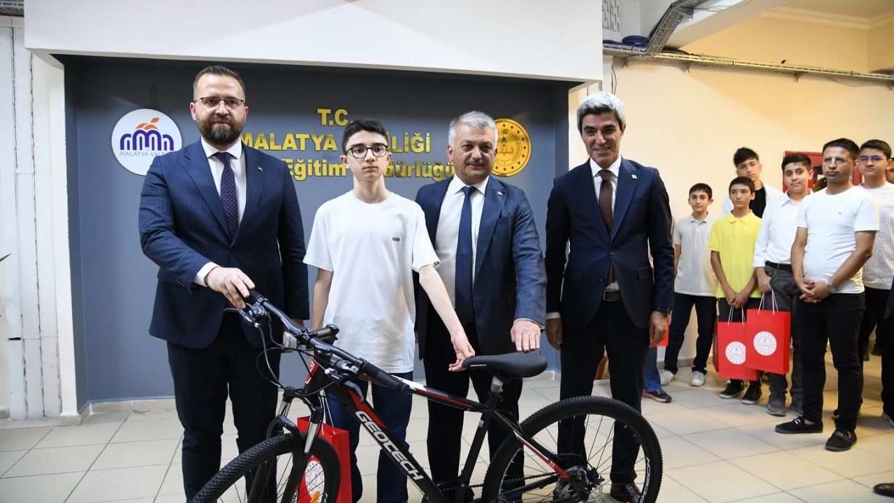İl Milli Eğitim Müdürlüğü salonunda gerçekleştirilen programda, Kültür ve Turizm Bakanı Mehmet Nuri Ersoy tarafından gönderilen bisiklet, LGS’da tam puan alan Atatürk Ortaokulu öğrencisi Erdal Baran Karadağ’a Malatya Valisi Ersin Yazıcı tarafından verildi.