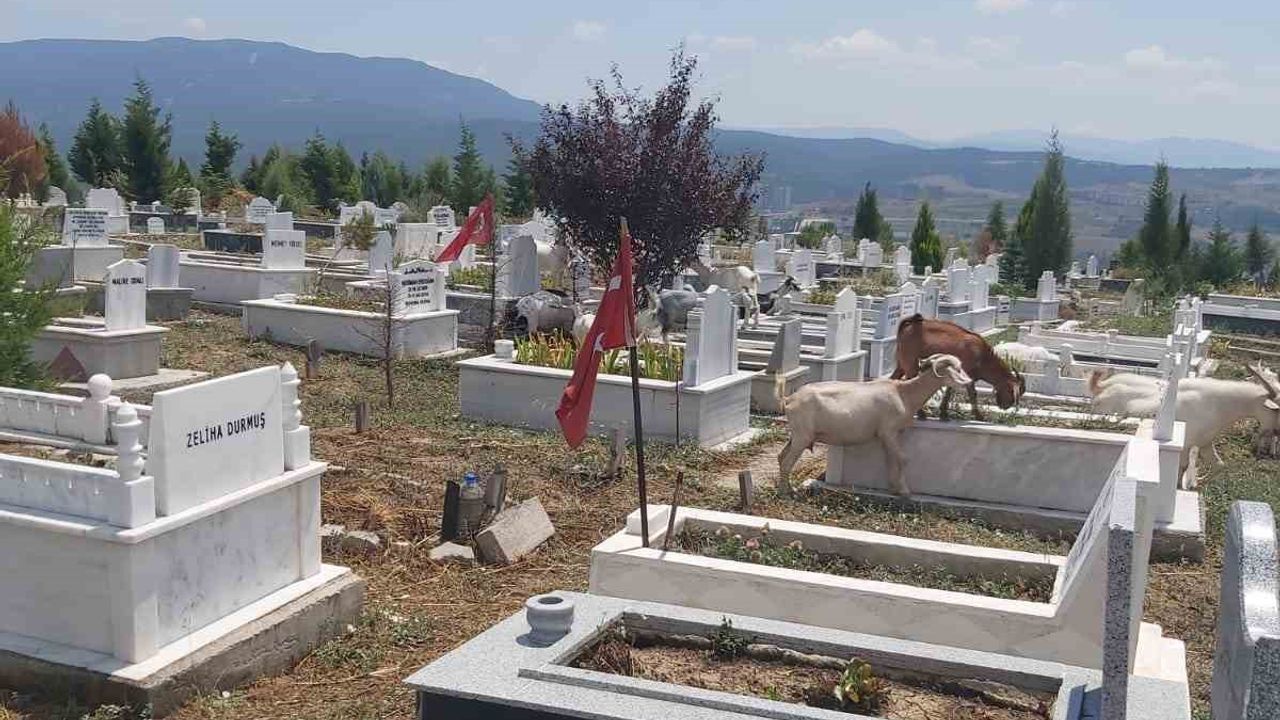 Mezarlık içerisine salınan küçükbaş hayvanları gören vatandaşlar duruma tepki gösterdi.