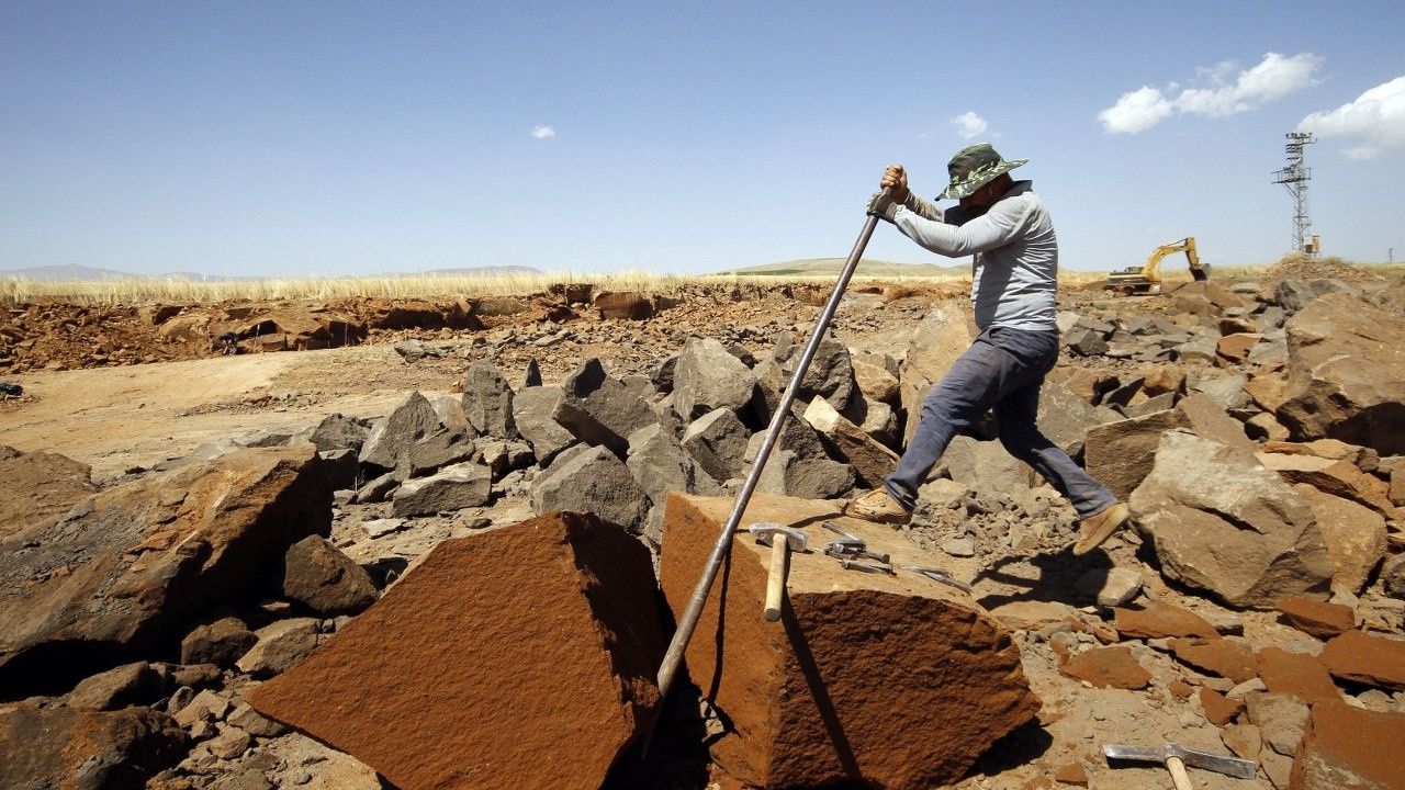 Bitlis’in Ahlat ilçesindeki taş işçileri, Nemrut Dağı eteklerinde çıkardıkları volkanik kaya kütlelerini parçalayarak ekmeklerini kazanmanın mücadelesini veriyor.