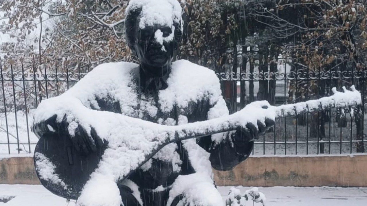 Türküleri ve deyişleriyle Halk müziğinin önemli değerlerinden biri olan ve Erzincan’ın gurur ve iftihar kaynaklarından Ozan Ali Ekber Çiçek’in Erzincan Belediyesi önündeki büstü de kardan nasibini aldı.