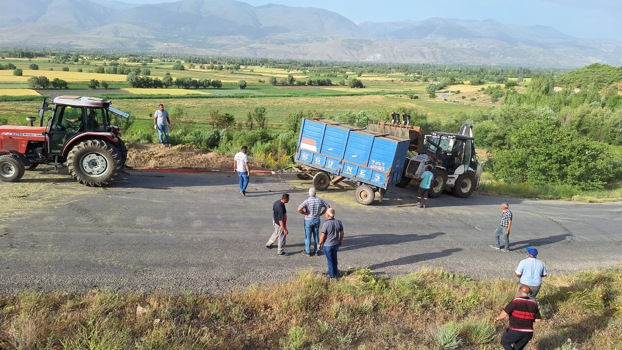 Kepçe ve köylülerin yardımıyla, römork şarampolden çıkarılarak olay yerinden çekildi.