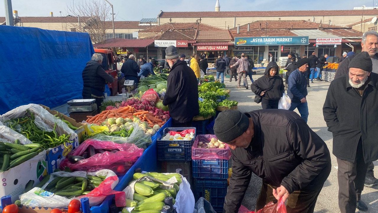Erzincan’da kurulan sebze ve meyve pazarı yeni yıl öncesi, doldu taştı. 2025’e 1 gün kala Pazar esnafının yüzü gülerken, mevsim meyveleri ilgi odağı oldu.