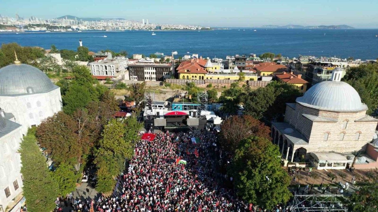 İstanbul’da Filistin’e Destek Platformu öncülüğünde düzenlenen “Şehit Heniyye’den Son Çağrı” mitingi için 200 bine yakın kişi Ayasofya Meydanı’nda toplandı.