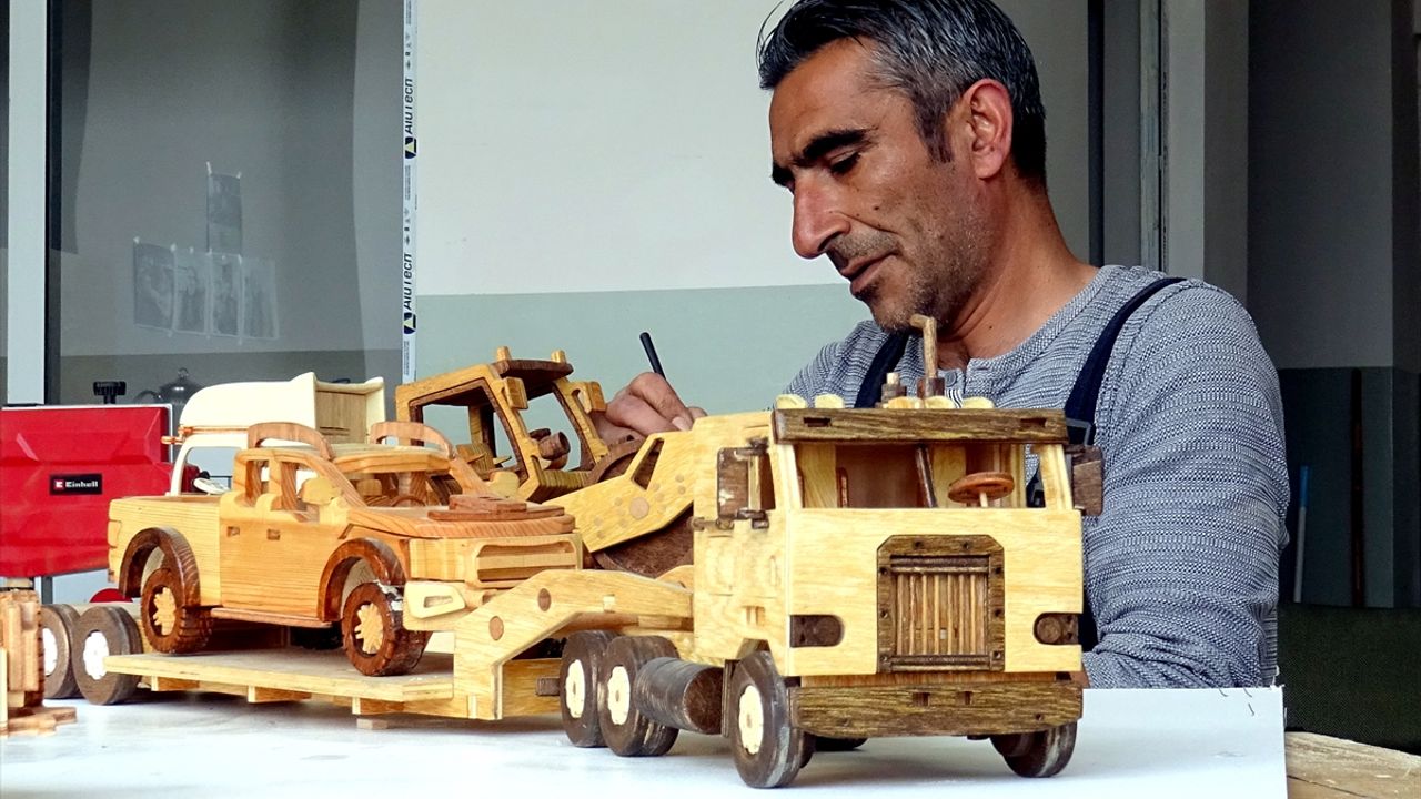 - Kars'ta Sarıkamış Kaymakamlığı himayesinde, atölyede yardımcı hizmetler personeli olarak zanaatını yapan Emrah Demir, ahşap süs eşyaları üretiyor