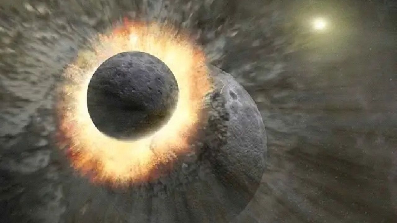 Ay’ın nasıl oluştuğuna dair en güçlü teori olan Büyük Çarpışma Hipotezi, Dünya ile Theia adlı dev bir gök cisminin çarpışması…