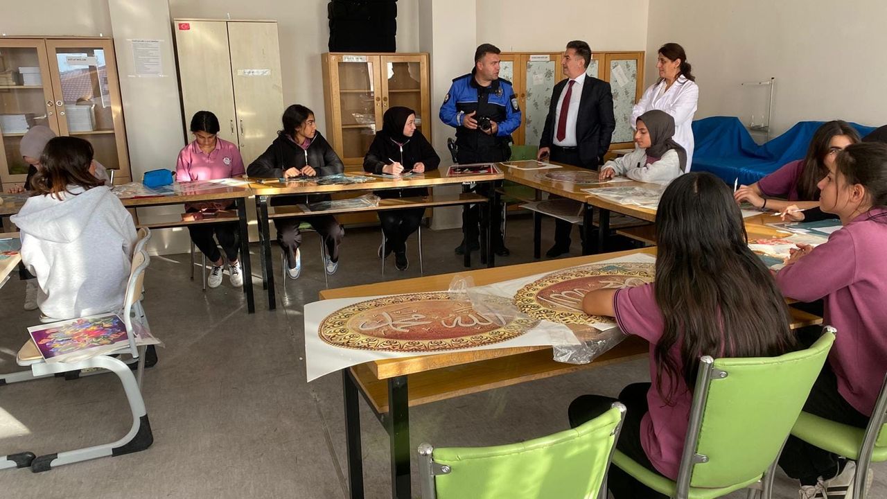 Erzincan’da "Biz Büyük Bir Aileyiz" projesi kapsamında, Hacı Ali Akın Mesleki ve Teknik Anadolu Lisesi öğrencilerine yönelik açılan Kağıt Rölyef…