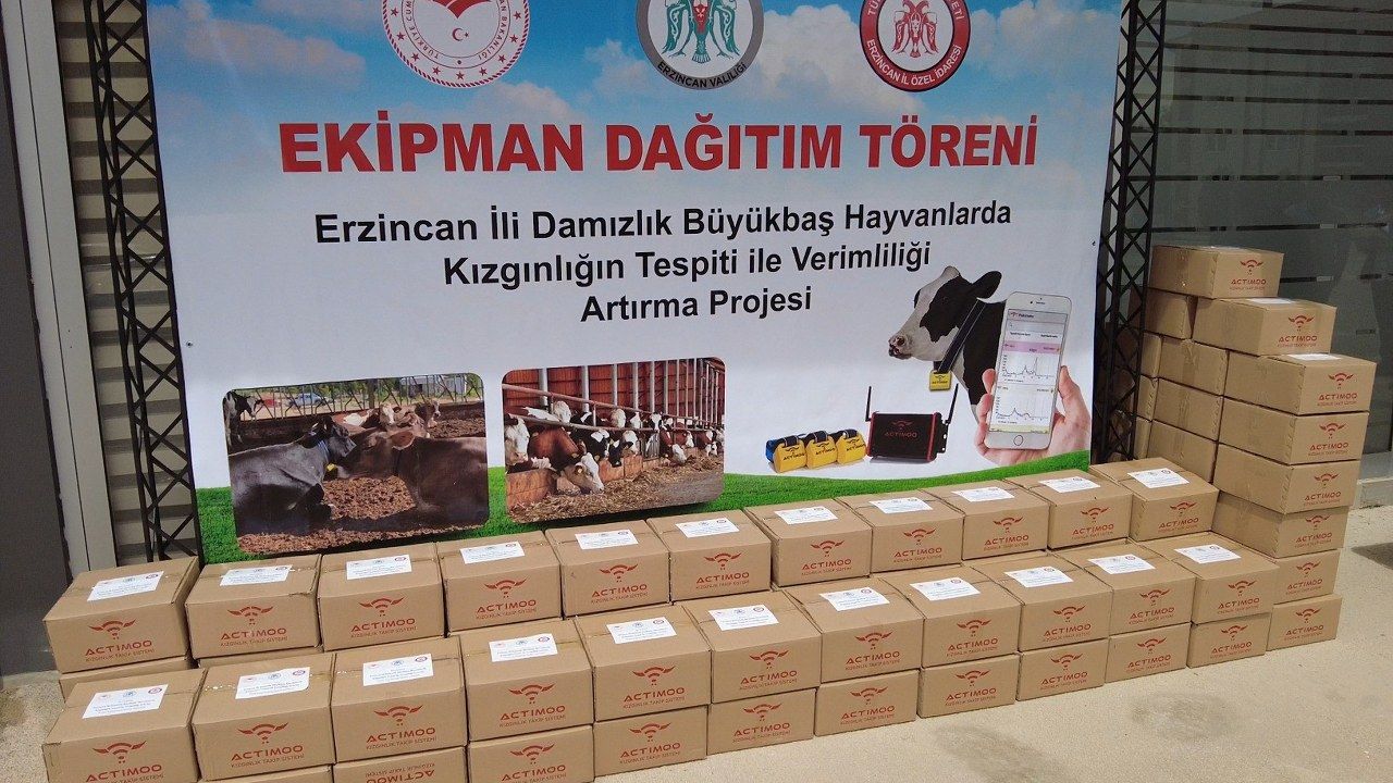 Erzincan'da Damızlık Büyükbaş Hayvanlarda Kızgınlığın Tespiti İle Verimliliği Artırma Projesi çerçevesinde 80 işletmeye 1 okuyucu ve 5 pedometre dağıtıldı.