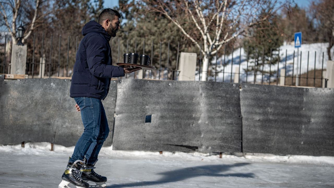 Erzurumlu buz hokeyi antrenörü Şamil Koç, Rusya'da gördüğü "buz pisti kafe" konseptini Erzurum'da hayata geçirdi.