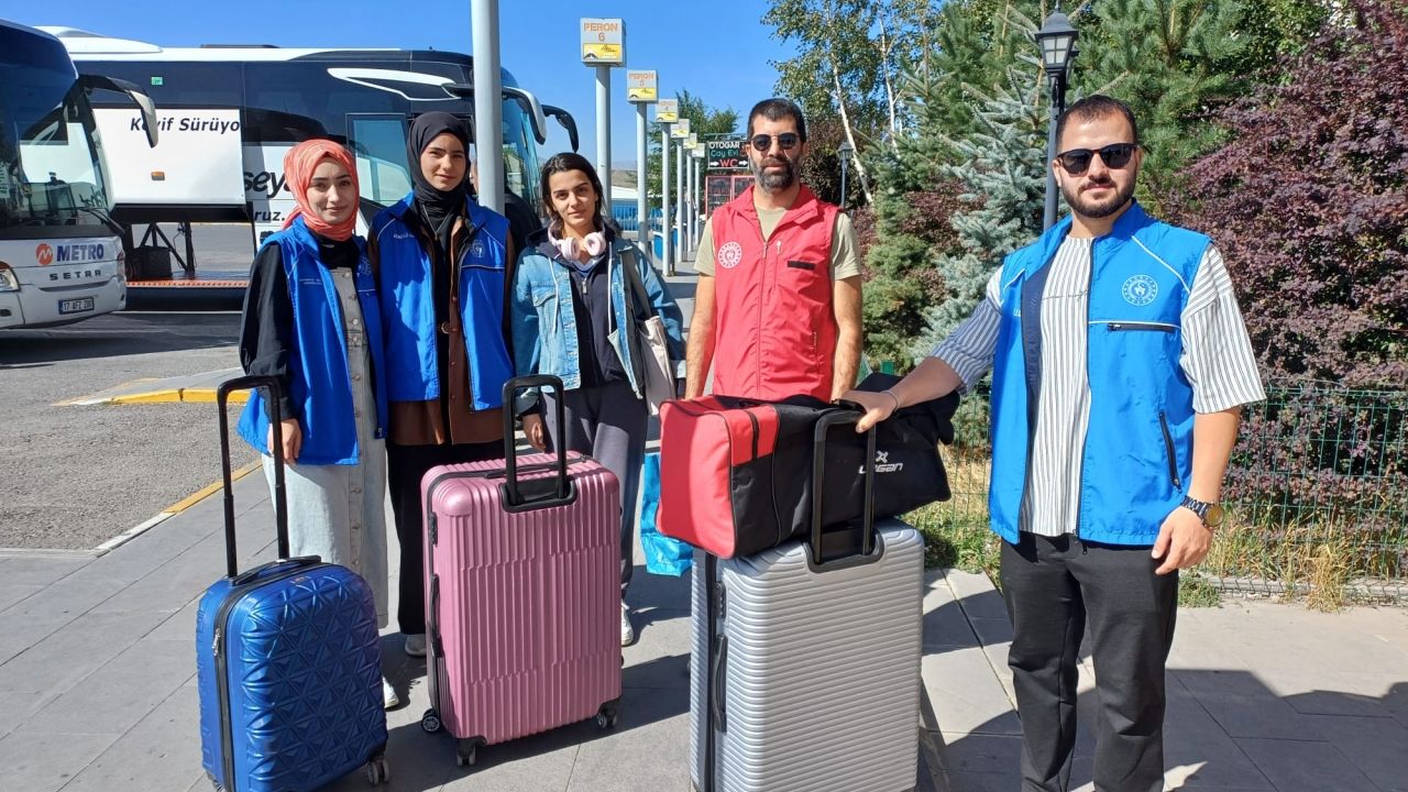 Ağrı’ya gelen üniversite öğrencileri çikolata ve çiçeklerle karşılandı
