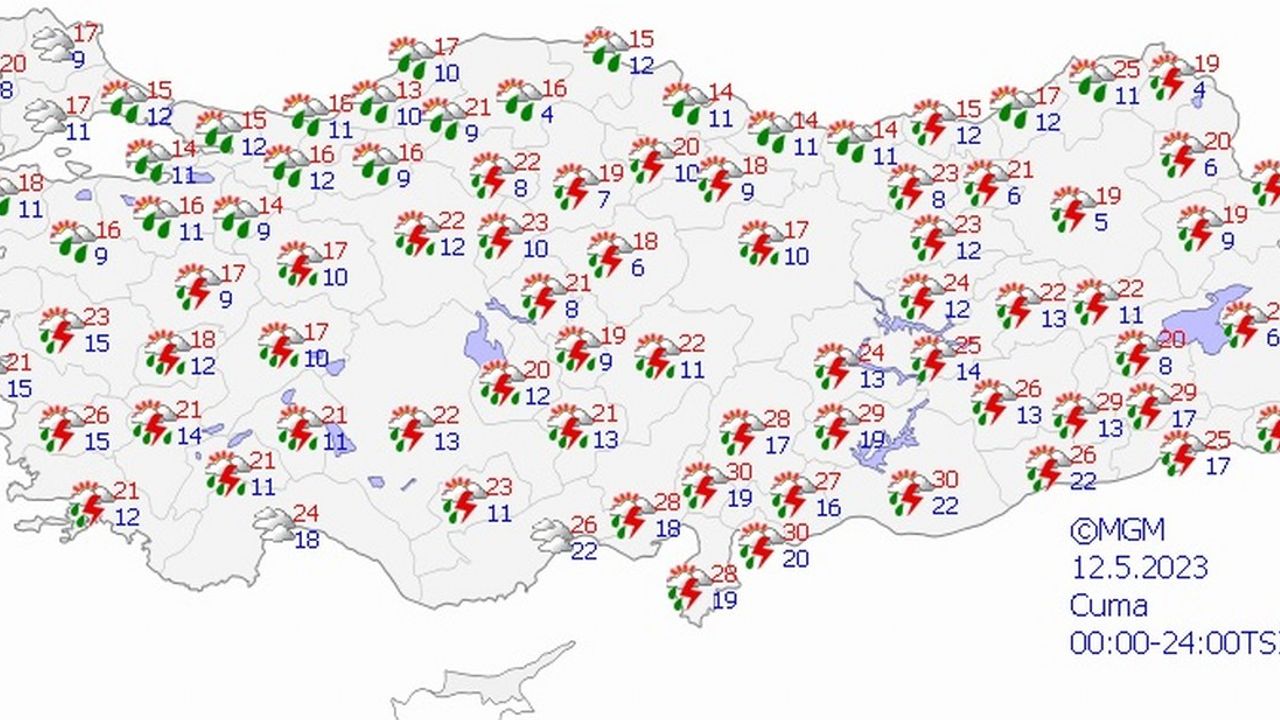 Doğu Anadolu Bölgesinin güneybatısı hariç tamamı, Cuma, Cumartesi ve Pazar günleri bölge geneli, Pazartesi günü kuzeyi ile doğusu gök gürültülü…