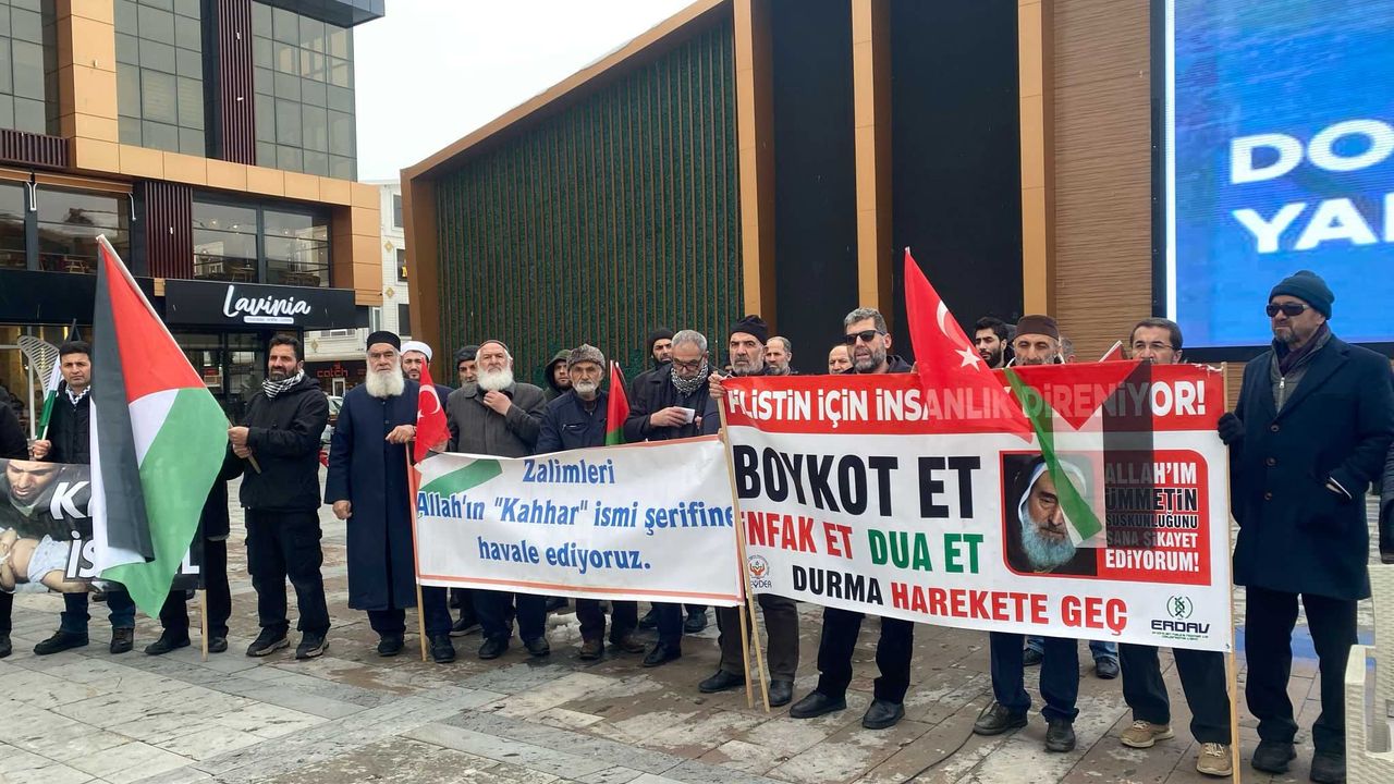 Erzincan’da toplanan vatandaşlar, Filistin’e destek vermek için bir araya geldi. Filistin Dayanışma Platformu’nun öncülüğünde gerçekleştirilen protestoya yoğun katılım sağlandı.