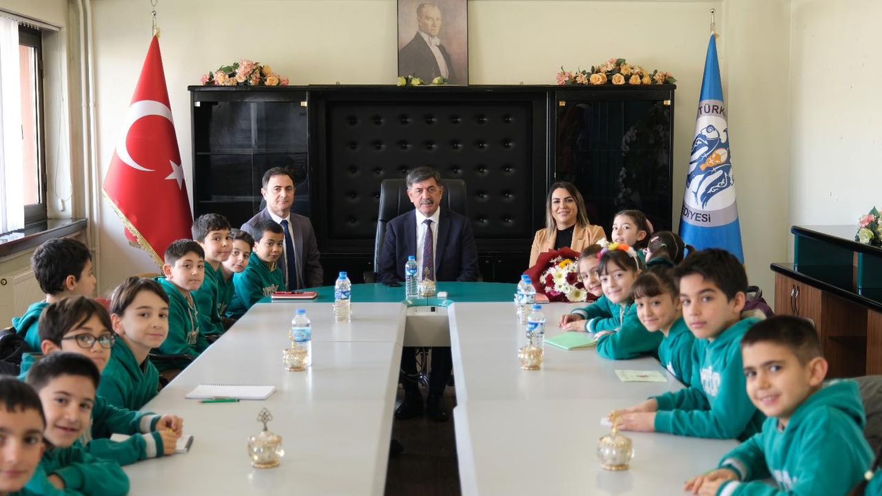 Minik öğrencilerden Başkan Aksun’a ziyaret