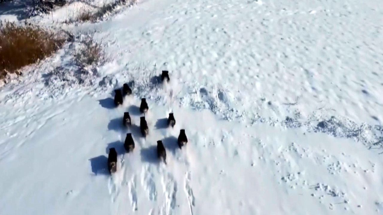 Kars’taki Karakurt HES Barajı’nda domuz sürüsü görüntülendi