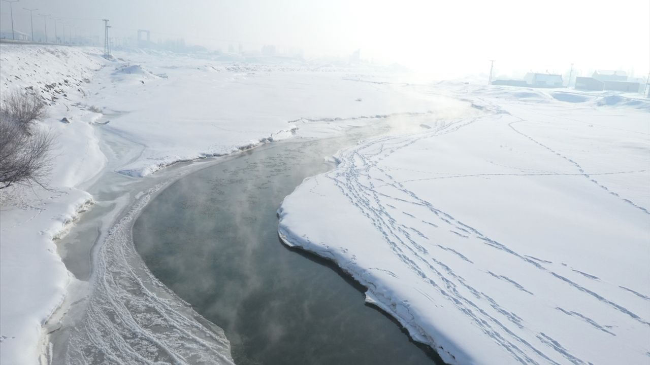 Ağrı’da Dondurucu Soğuklar Etkili: Murat Nehri Kısmen Buzla Kaplandı