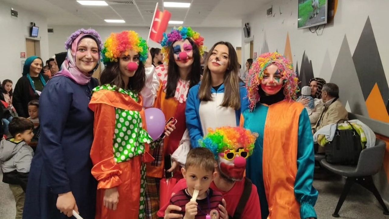 Üniversiteli bir grup genç, palyaço kostümüyle Mengücek Gazi Eğitim ve Araştırma Hastanesinde çocuk hastaları eğlendirdi.