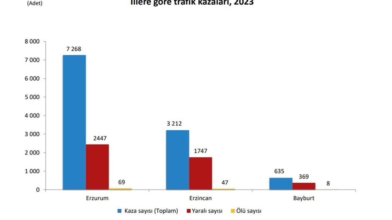 TRA1 Bölgesi'nde yer alan Erzincan, Erzurum ve Bayburt illerinde 2023 yılında trafik kazası, yaralı ve ölü sayıları açıklandı. Erzincan'da Bayburt’tan…