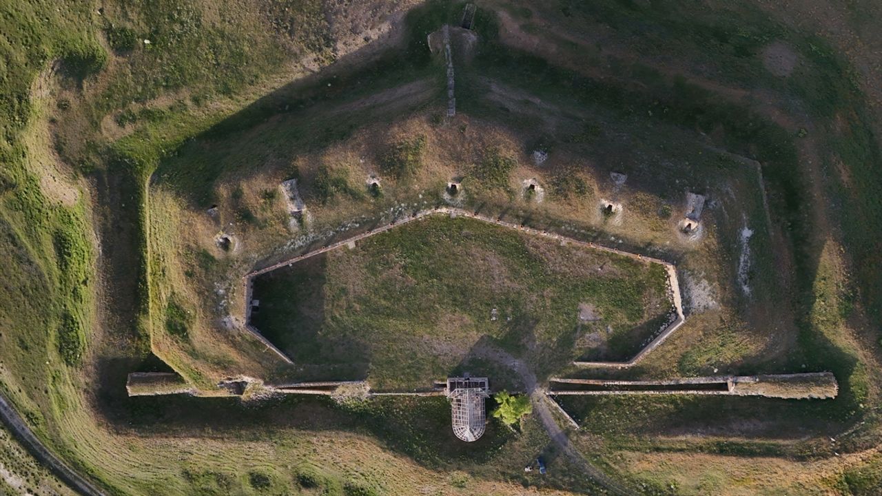 - Erzurum-Kars kara yolunun 5. kilometresinde 2 bin 125 rakımda yay şeklinde inşa edilen 18 odalı tabya, dron ile görüntülendi