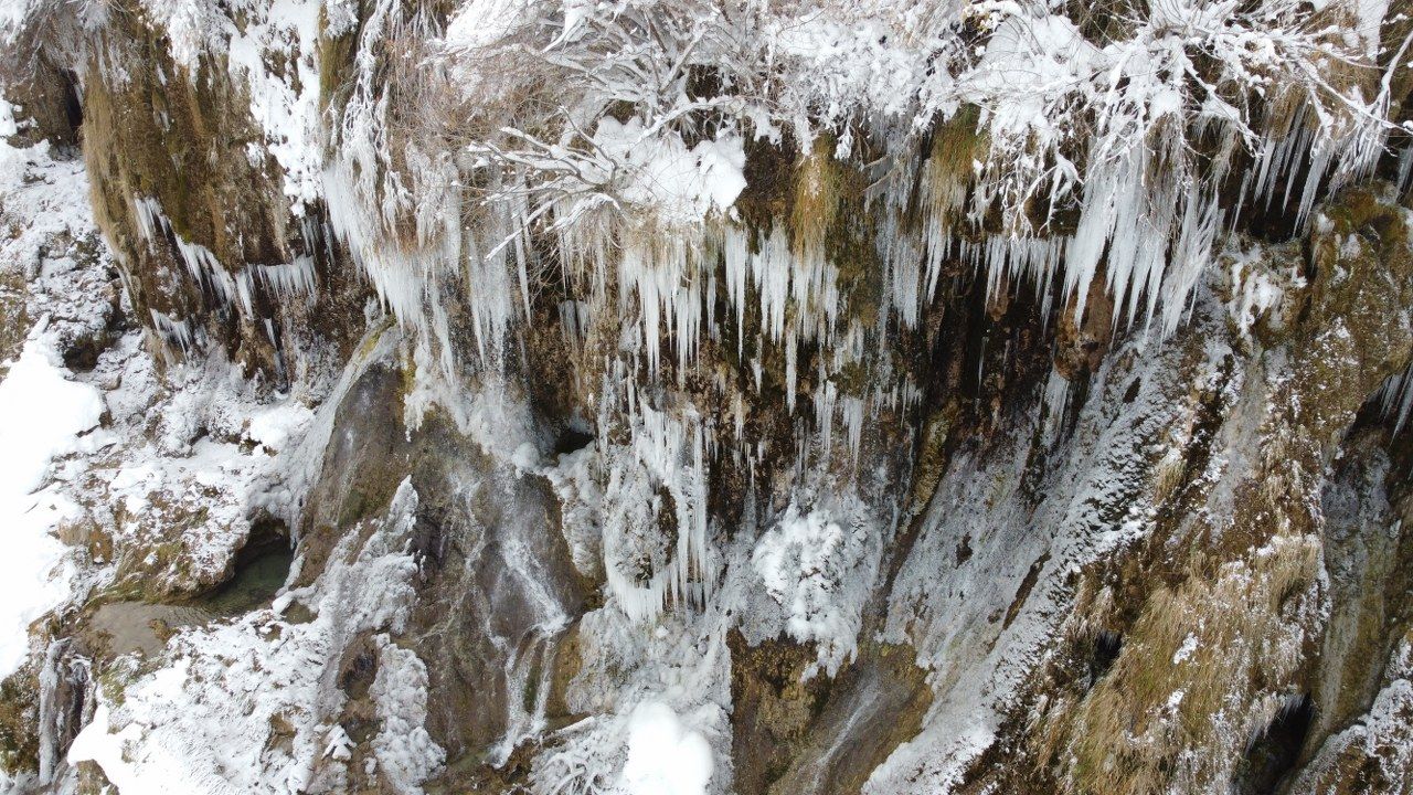 Girlevik Şelalesi’nde Buz Sarkıtları Görsel Şölen Sunuyor