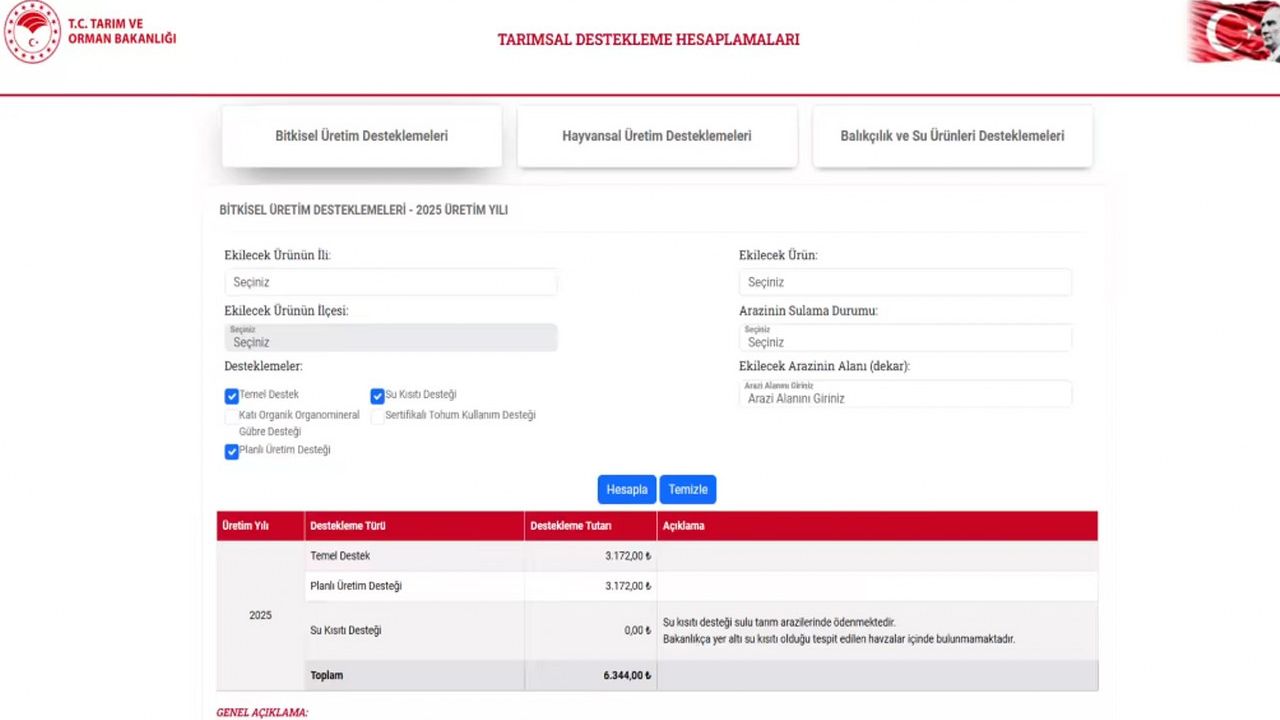 Tarım ve Orman Bakanlığı, üreticilerin alacağı destek ödemelerini hızlı ve kolay bir şekilde öğrenebileceği 'Destek Hesaplama Sistemi'ni devreye aldı.